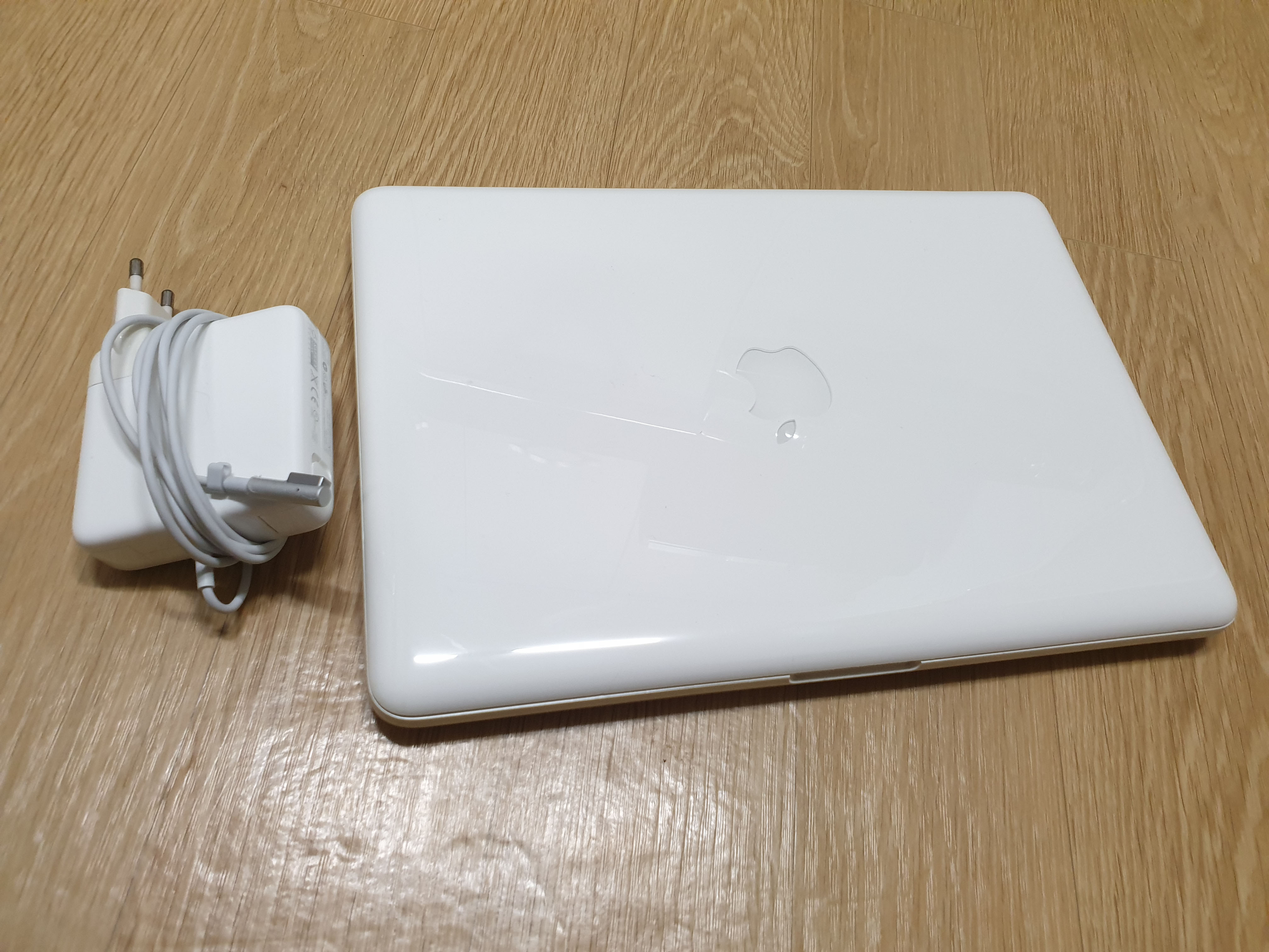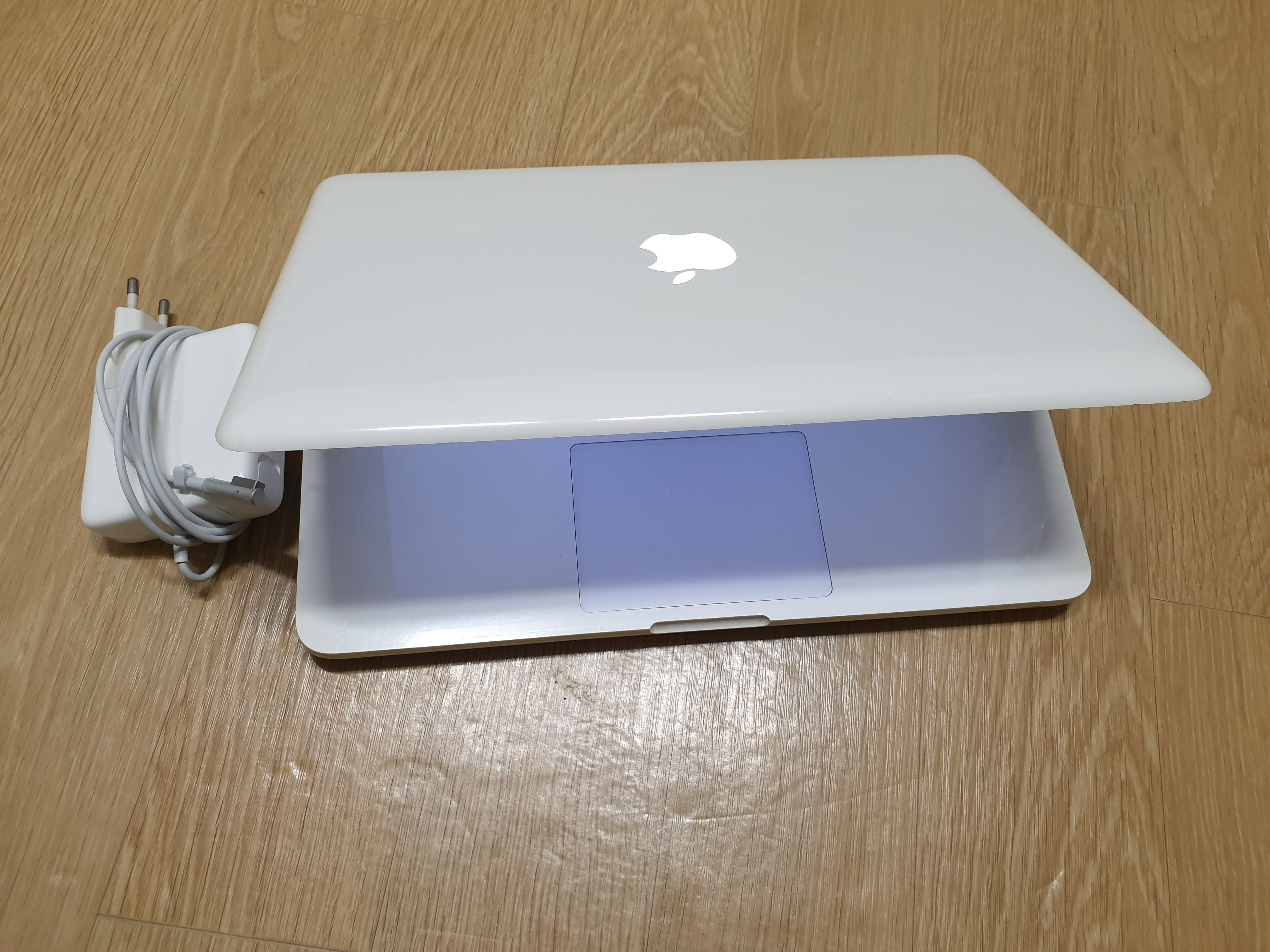 구성품은 배터리 새거 장착된 외관좋은 화이트맥북과 새로 산 충전기입니다