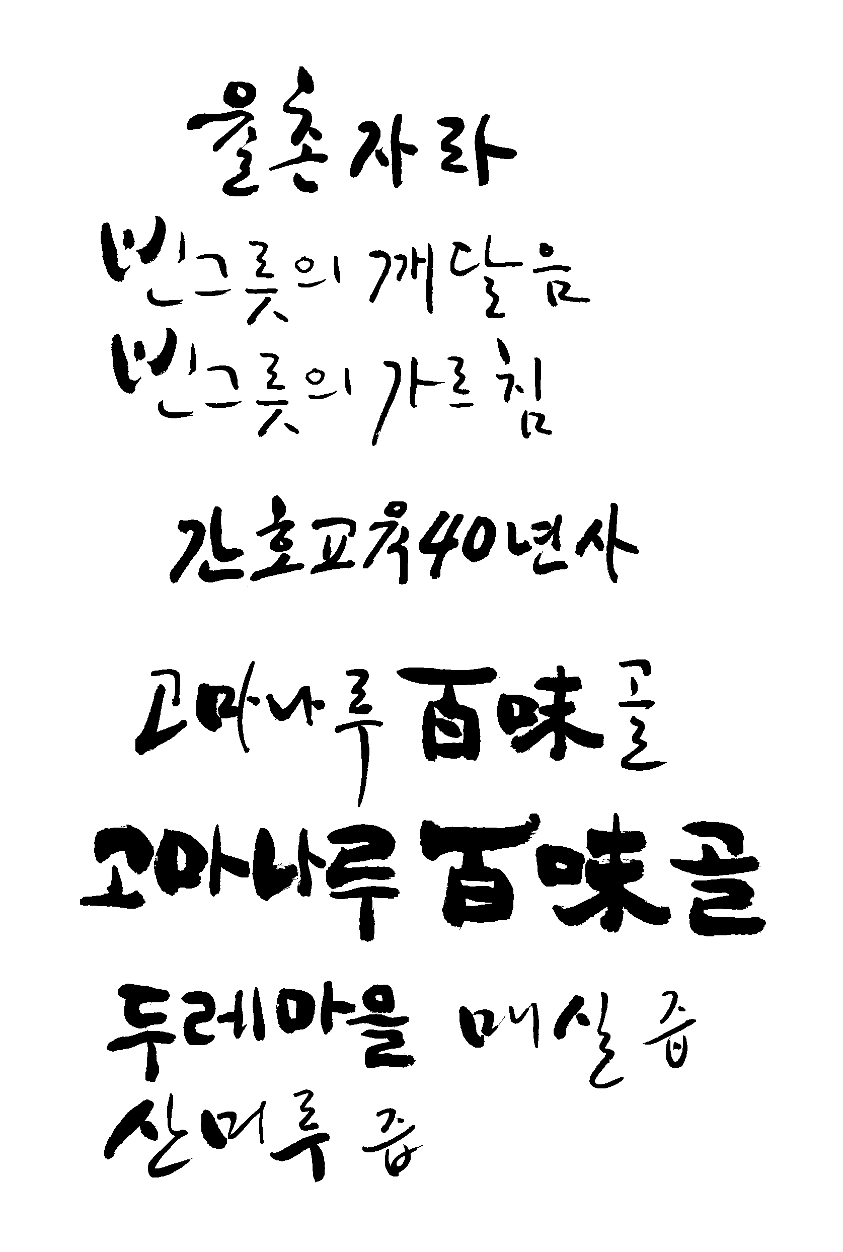 캘리모둠 예인 일반 5 7374 2009.02.21 00:21 의뢰하신 캘리를 모아 봤어요. 그리고 어디에 사용하것인지, 언제까지 필요 하신지, 원하시는 캘리 스타일은요? ( 참고 할 캘리그래피 샘플을 같이 올려 주시면 더 좋겠죠 ) 그리고 작업된 자료를 올려주시면 다음 작업에 도움이 많이 될듯 싶네요.