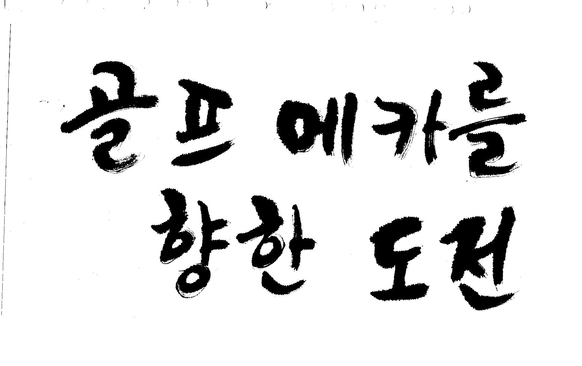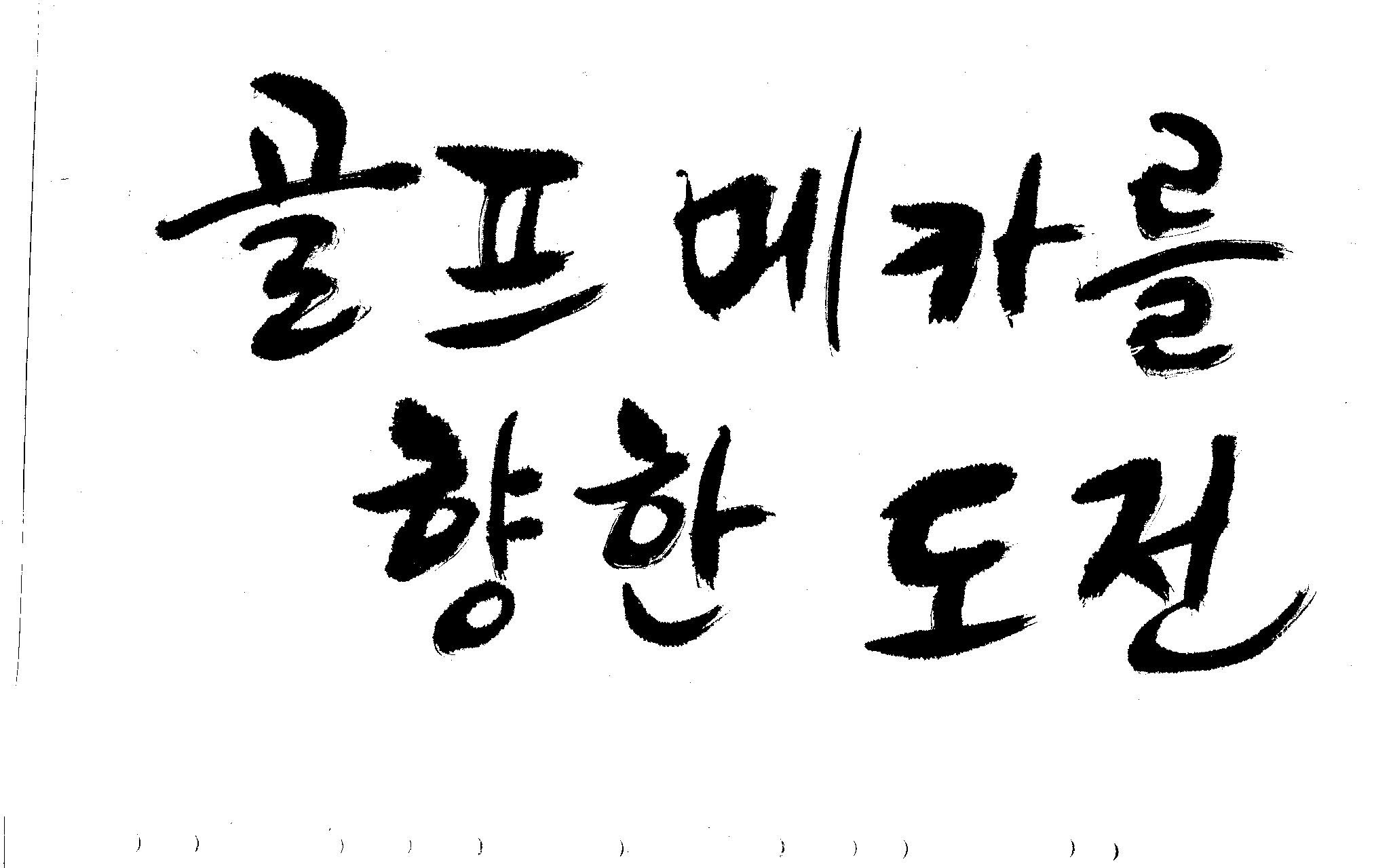 우경의 행복한 캘리세상-골프메카 김철호 일반 0 8807 2009.07.18 10:25 리듬감을 최대한 살리고 ㅡ 스포츠의 운동감과 밝음 기교섞인 획을 배제--일반적인 느낌 굵기변화를 통하여 도전 낱말을 강조 스타일은 비슷하지만 ...한 사람이 썼으니까 ㅎㅎㅎ 서로 다른 글꼴을 올린 것은... 비교하여 보시고... 편집자에게 선택권을 주는 것입니다